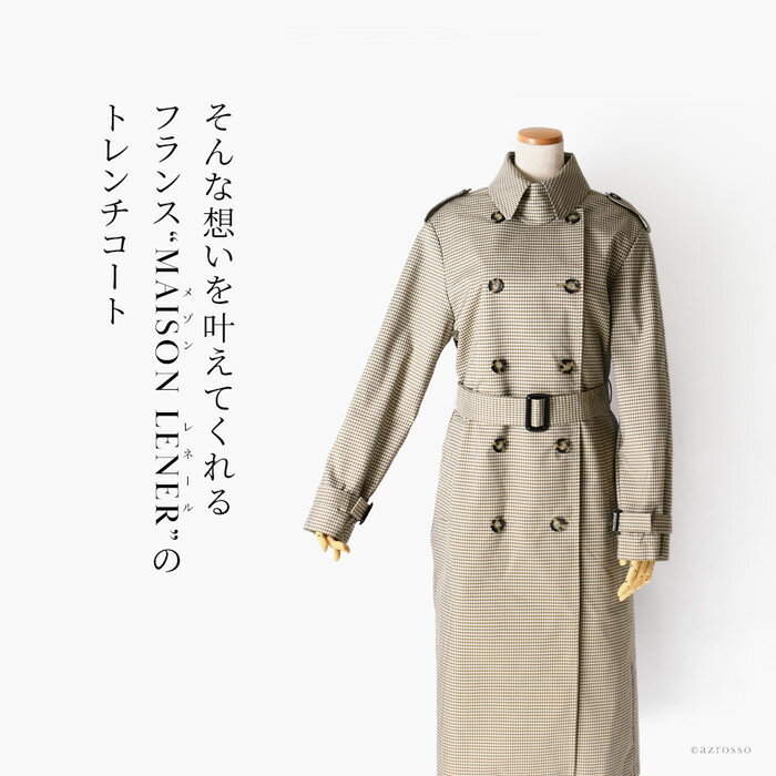 商品詳細 ▼シーン:通勤|オフィス|仕事|出張|国内旅行|海外旅行|普段使い|春|秋|小雨 ▼系統:きれいめ|カジュアル|大人|おしゃれ|クラシカル|高級感|レディース|女性用 ▼特徴:チェック柄|ギンガムチェック|ロング丈|晴雨兼用|軽量|軽い|春コート|スプリングコート|ベルト付き|ダブルボタン ブランド名 MAISON LENER(メゾン レネール) 60年の歴史を誇る高級コート地メーカーである、フランスのLENER(レネール)。